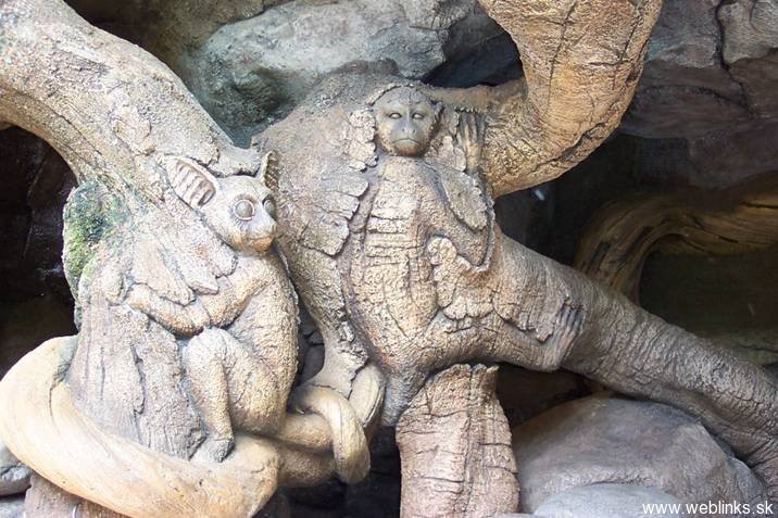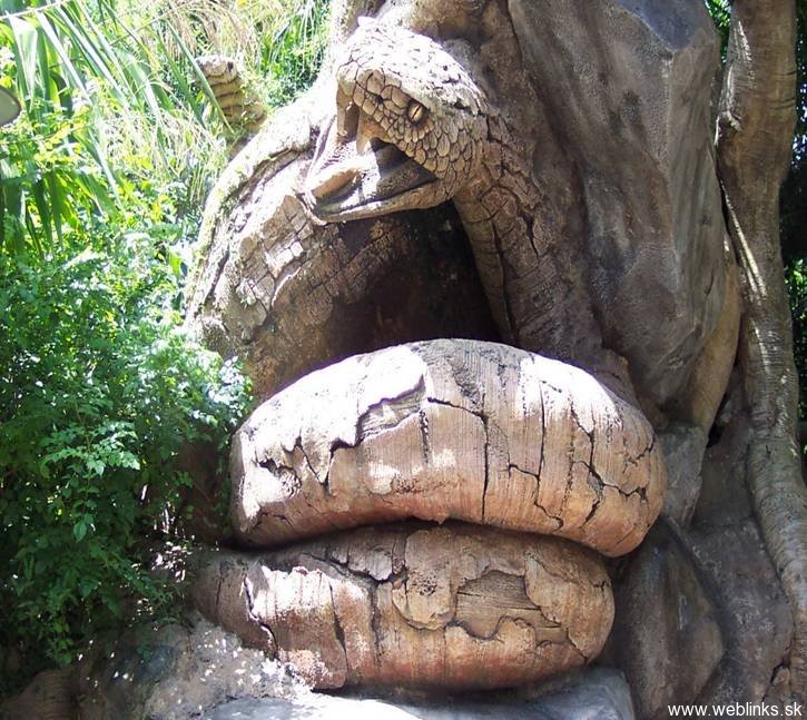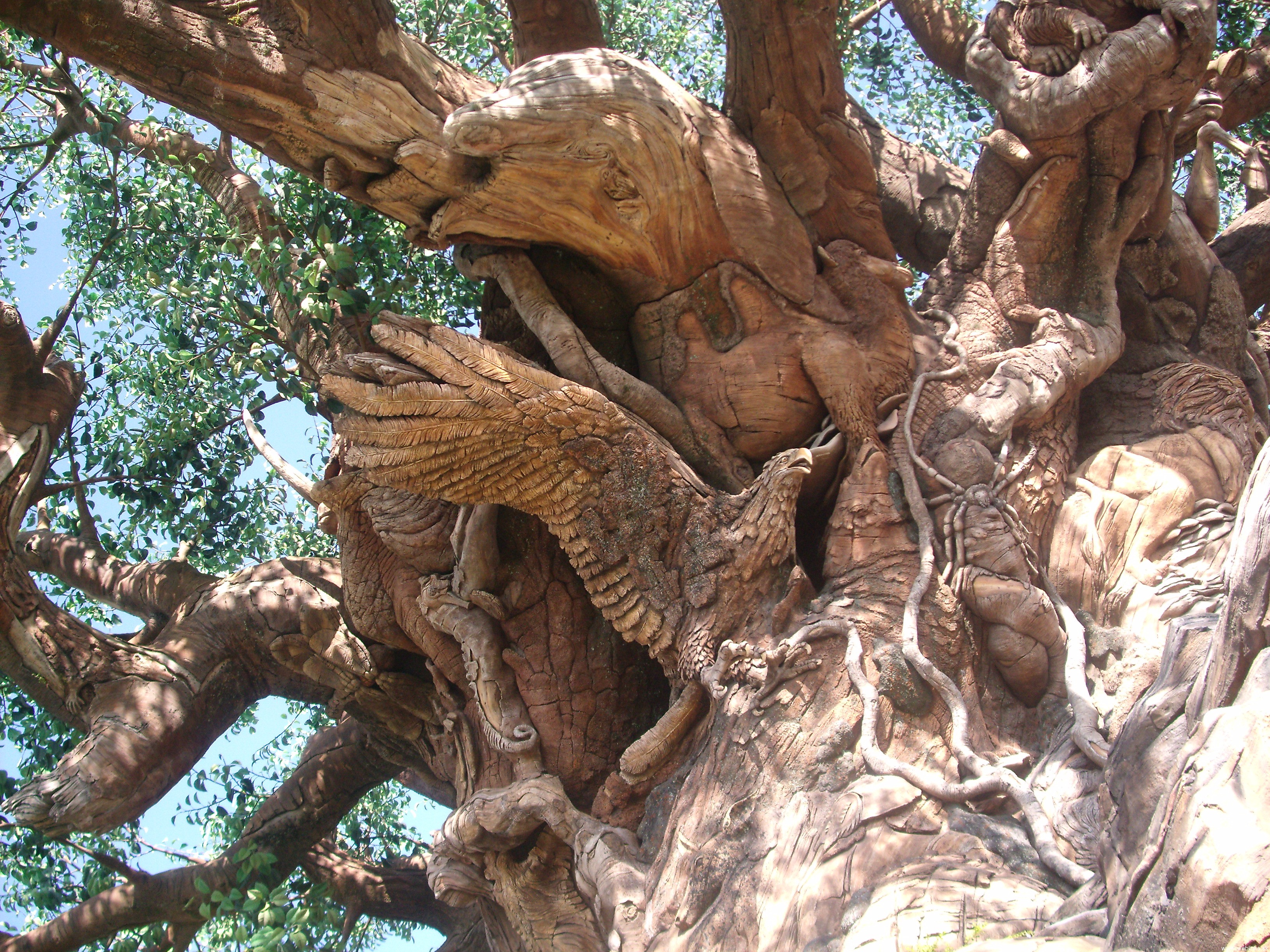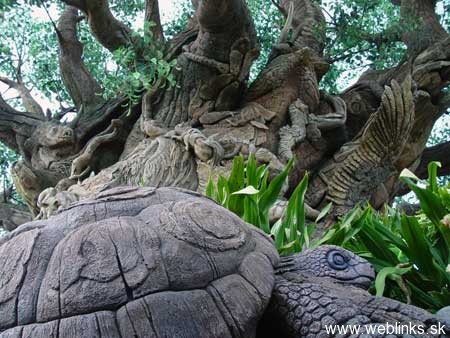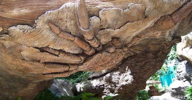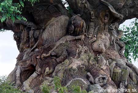 Tento strom sa nachádza v Indii a nikto nevie, ako zvieratá do stromu zarástli. Vedci skúmajú možnosť, že strom ich absorboval, obalil živicou a takto zakonzervoval, respektíve z nich urobil múmie. Masa vytvrdla a takto sa zachovali pôvodné tvary. Vedci sa ďalej domnievajú, že tento druh stromu je dôkazom toho, že aj rastliny sa dokázali adaptovať na nehostinné prostredie. Keď nenašli dostatok vlahy a živnej pôdy, začali vylučovať šťavu, ktorá zvieratá nalákala do jeho blízkosti. Tie po jej konzumácii upadli do kómy kvôli jej toxickým účinkom. Takto ich strom postupne pomocou koreňov a konárov za necelých 48 hodín „priviazal“ ku kmeňu, z ktorého sa uvoľňovala živica a zvieratá zakonzervovala. Tento mohutný obor nemal problém absorbovať aj väčšie zvieratá ako hrochy a krokodíly.No dobre.. dosť bolo srandy 🙂 Tento strom nie je vôbec živý. Je umelý a je súčasťou Floridského Disney Parku a v jeho útrobách je dokonca 3D kino. Bol postavený zo špeciálneho materiálu pri príležitosti propagácie rozprávky A Bugs Life. Či?…