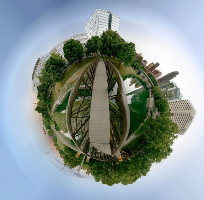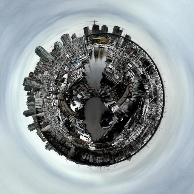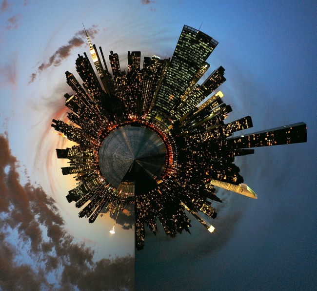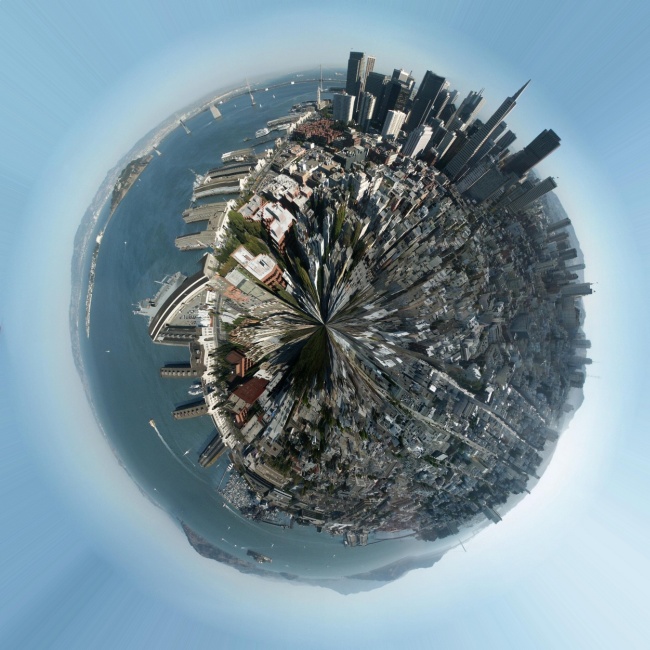 Táto fotomanipulácia sa dá jednoducho urobiť vo Photoshope. Je potrebné urobiť resize obrázku na rovnakú výšku aj šírku, otočiť ho hore nohami a v záložke „filter“ kliknut na „distort“ a potom „polar coordinates“, potom „rectangular to polar“. Samozrejme je dobré mať vhodnú fotku. Napríklad s oblohou, ktorá tvorí 1/3 fotky..