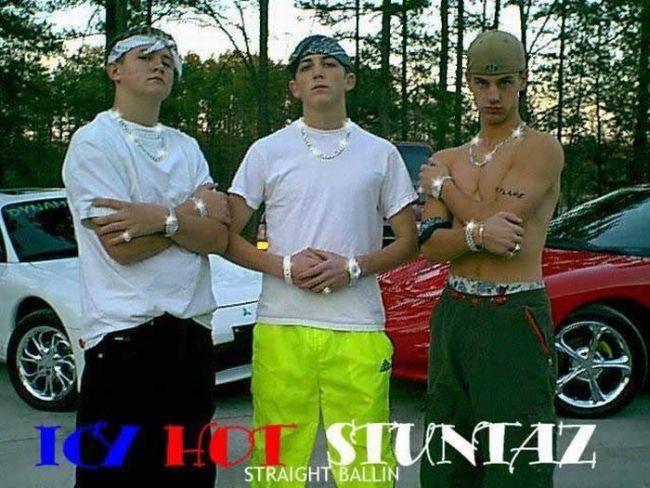 Každý chce byť gangster. Mať 12 emailov, mobil na splátky a 24 hodín byť na FB. Nagelovať vlasy (predtým namelírovať), pekne sa opáliť, dať si 4 retiazky na krk, 2 na ruky, 6 strieborných prsteňov, navoňať sa najnovším dolce a gabbana (taká kravina, že ani nehľadám na google ako sa to píše), obliecť ružovú košelu, prehodiť bielym svetrom (rozumej zaviazať rukávya položiť na plecia). Najväčší machri si ešte urobia mašinkou zárez na obočí a umyvajú 2 týždne riad, aby si mohli požičať od otca Renaul Laguna na diskotéku. Šak Janka bude týmto absolútne ohúrená a ani nezistí, že má na parkete miesto gatiek penis. Všetci chcú vyzerať jak lady gaga (rozumej batman skrížený s koňom a puklicou na auto)