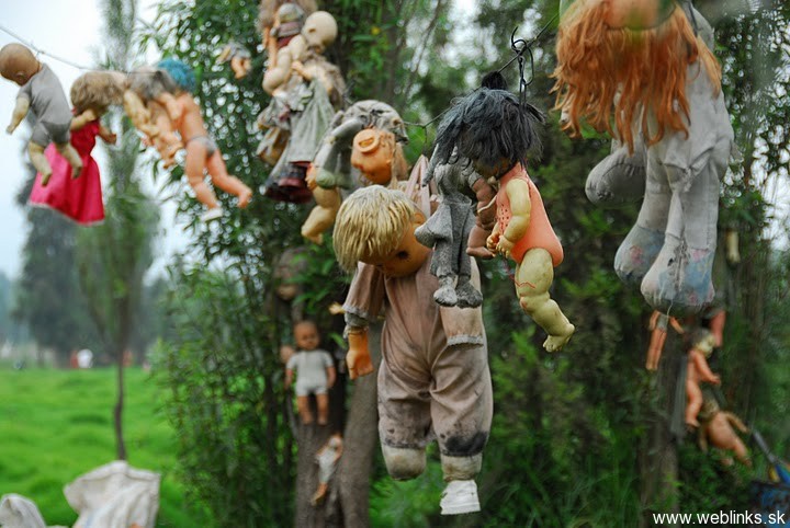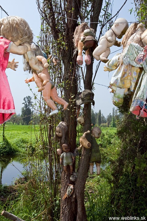 Tento ostrov sa nachádza v Mexiku a svojho času tam žil jeho jediný obyvateľ, ktorý mal pasiu v zbieraní bábik. Zbieral ich po smetiskách, alebo menil za zeleninu, ktorú na ostrove pestoval. Tieto bábiky vešal po ostrove pre česť dievčaťa, ktoré našli utopené v jednej zo zátok. Príbeh sa uzatvára a podčiarkuje tým, že jedného dňa našli v tej istej zátoke utopeného aj jeho. No a dobrá story teraz priťahuje kopec turistov. Len škoda, že ho museli poslanci mestského zastupitešstva takto utopiť, aby ekonomicky pozdvihli región 🙂