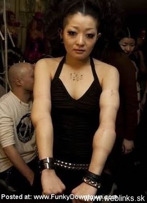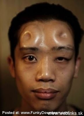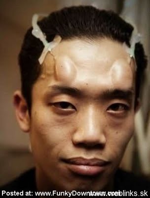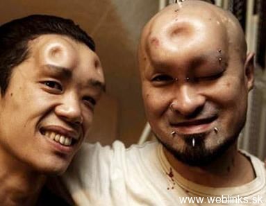 Čo sa nepodarilo matke prírode, dokonajú ľudia sami. Niektorí z nás nemali to šťastie, že boli splodení na afterpárty Mister a Miss Universe. No a niektorí nás nechcú nehať na pochybách a dielo skazy dokončia sami. Títo japonci našli spôsob modifikácie tela chemikáliami/tekutinami, ktorými si zväčšujú priestor pod pokožkou. Zrejme to bude samotuhnúca hmota na gél, lebo sa do nej dajú krásne modelovať tvary. Ako ten s tou šiškou na čele. Len človek má pocit, že niektorým tá tekutina pretiekla až do mozgu a vytuhla tam..
